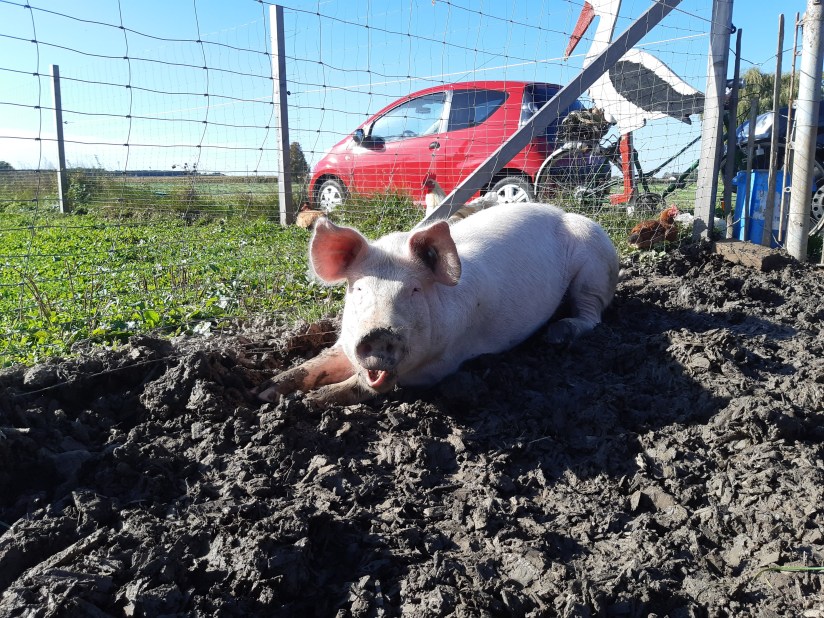 Unsere 3 kleinen Schweinchen kamen Ende Mai 2019, im Alter von 10 Wochen zu uns. Sie sind aus einer konventionell betriebenen Schweinemast. Dass das Leben dort nicht artgerecht sein kann, kann man sich vorstellen.