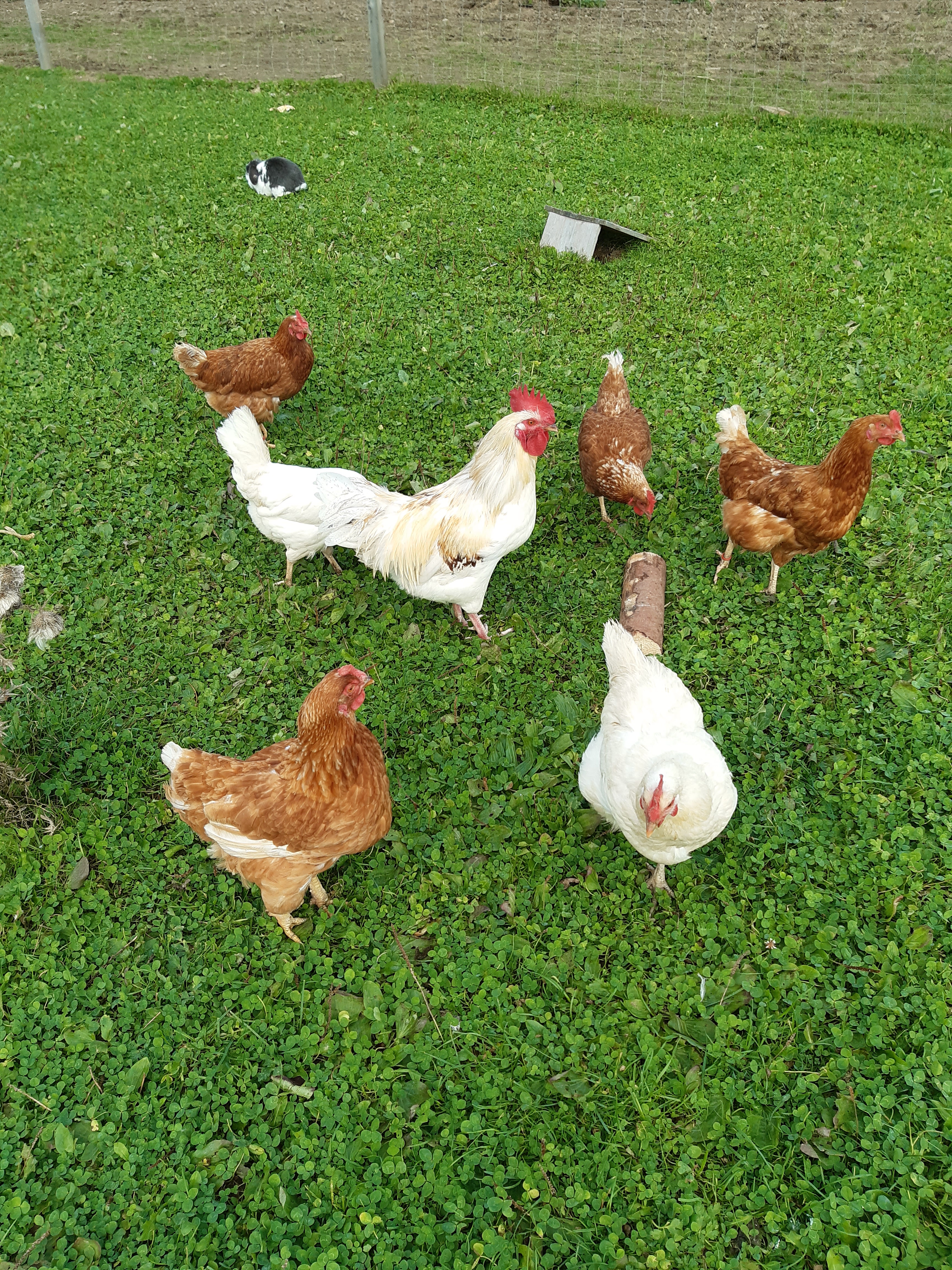 Unsere Hühner gibt es schon von Anfang an auf dem Schneider Hof. Momentan sind es 20 Hühner und 2 Hähne, die sich alle gut verstehen. Viele von den Hühnern kommen aus einer Legebatterie, bei der die Hühner nach 1 Jahr „ausgetauscht“ und geschlachtet werden, weil sie nicht mehr genug Eier legen. Ein paar unserer Hühner kommen auch aus schlechter Haltung.