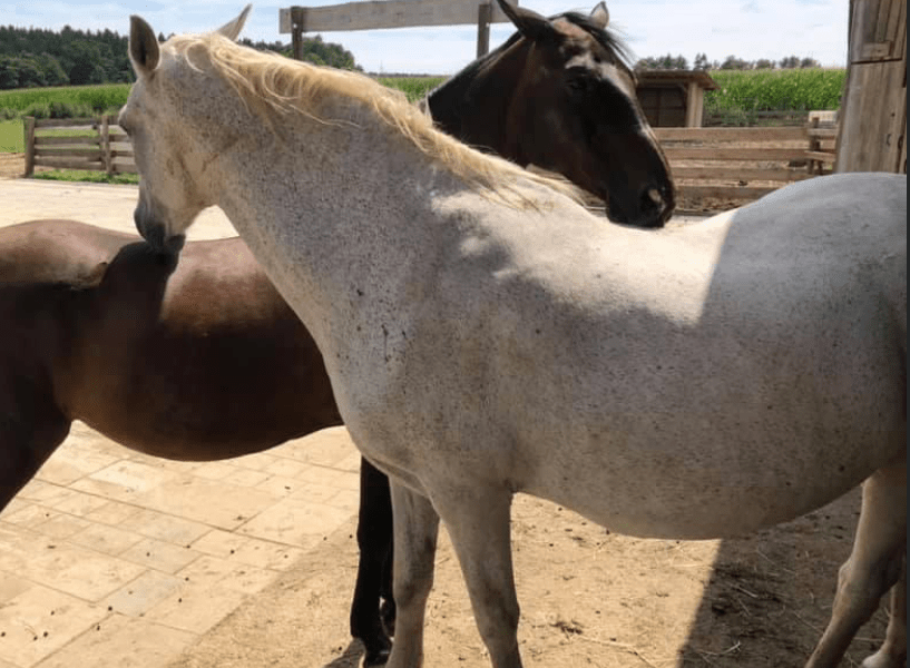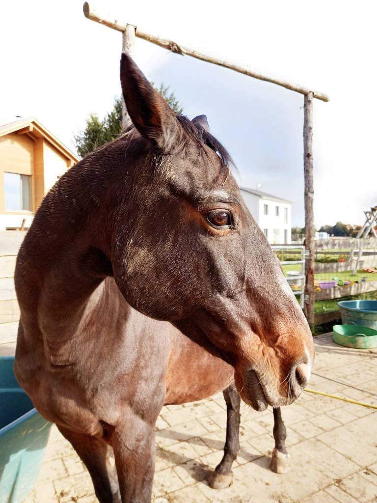 Xaver – Er kam 2015 als Fohlen zu uns und ist ein richtiger Lauser.Columbus. Der schöne Wallach lief jahrelang auf der Trabrennbahn, bis er zu langsam wurde. Im Herbst 2014 nahmen wir ihn auf. Er ist damit, das „dienstälteste“ Tier auf dem Schneider Hof. Es dauerte monatelang bis Columbus wieder Vertrauen zum Menschen aufbauen konnte. An seinem Zustand bei der Ankunft lies sich erahnen, was das Pferd durchmachen musste.Milka. Ein privater Offenstall wurde aufgelöst. Aufgrund ihres Alters und einiger kleiner Krankheiten, hätte sie wohl nur sehr schwer einen Platz gefunden. Milka zog im Sommer 2021 bei uns ein. Flocke. Sie kam im Winter 2019 gemeinsam mit ihrer Freundin Thessa zu uns. Thessa starb im Frühjahr 2021. Ein alleinstehender Mann kümmerte sich um die Pferde, bis er plötzlich starb und die Tiere mehrere Tage unversorgt blieben. Flocke ist schon 28 Jahre alt, nicht mehr reitbar und nicht immer leicht zu handeln. Ein neues Zuhause zu finden, wäre daher sehr schwierig geworden.Holli und Hubsi. Ein älterer Ex-Landwirt, der nicht viel vom Kastrieren seiner Tiere hält. Ihm wurde die Arbeit zu viel und so konnten wir im November 2021 Pony Holli und ihr Hengstfohlen Hubsi zu uns holen. Besonders Holli ist stark vernachlässigt und bedarf viel Pflege und Zuwendung.