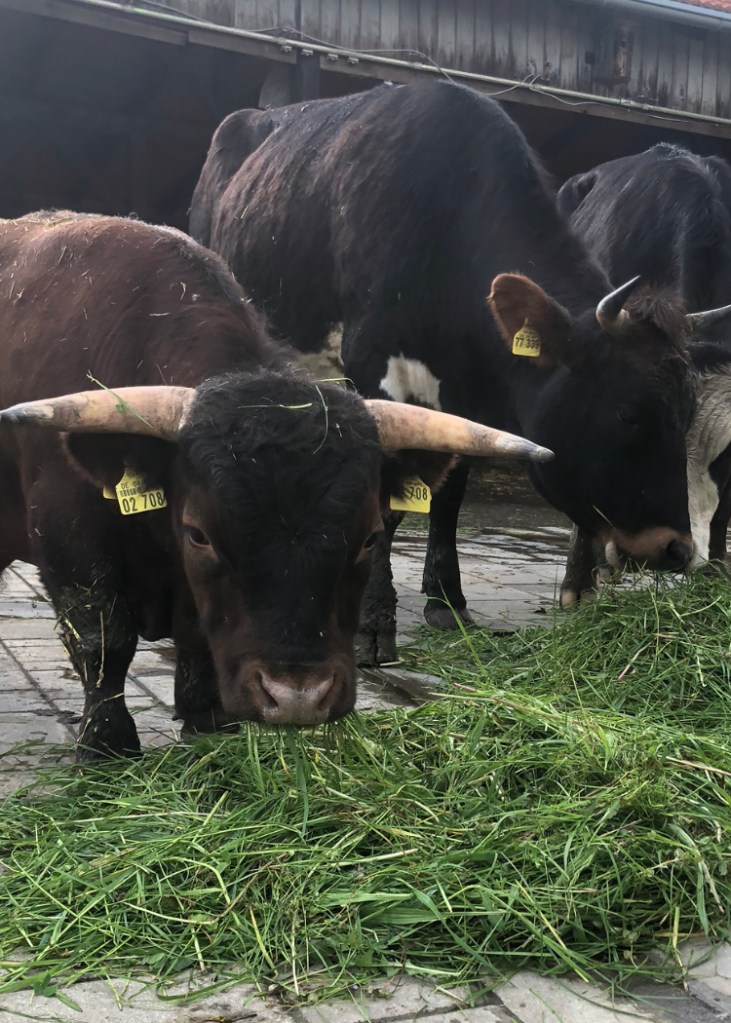 Fräulein Muh. Muh sollte eigentlich eine hochwertige Zuchtkuh werden. Der ehemalige Besitzer gab viel Geld für ihren Embrio aus. Dass dabei dann ein blindes Kälbchen auf die Welt kommt, hat nicht in seine Pläne gepasst. Fräulein Muh hat dadurch Glück gehabt. Hier lebt sie ein selbstbestimmtes Leben und hat keinerlei Probleme mit ihrem Handicap. Napoleon (links) und Isi. Napoleon ist aufgrund eines Gendefekts kleinwüchsig. Ihm ist das wurscht. Er genießt sein Leben wie ein Großer. Isi hatte das Glück in der Nähe von tierlieben Meschen aufzuwachsen. Sie konnte kein Kalb mehr aufnehmen und sollte geschlachtet werden. Das Retterehepaar kam auf uns zu und kurz darauf war Isi hier.Fanny (unten) und Veverl. Fanny und ihr langhaariger Freund Ferdinand zogen im Winter 2019 bei uns ein. Damals waren die Hörner noch kleiner. Eine befreundete Tierschützerin (Anna) lernte Fanny und Ferdinand als Kälber bei einem bekannten Landwirt kennen. Fanny galt dort als Ausbruchskünstlerin und raubte dem Landwirt alle Nerven, sodass dieser kurzen Prozess machen wollte. Anna meldete sich kurzerhand bei uns und wir nahmen damals neben Fanny auch ihren besten Freund Ferdinand mit zu uns. Dass die Beiden 1 Woche nach Ankunft bei uns auch ausgebüxt sind, muss nicht erwähnt werden..Die Wutzerl: Ben (links) und Felix. Die Beiden kamen im Februar 2021 als 3 Wochen alte Kälber zu uns. Felix hatte keinen guten Start ins Leben. Es gab einige Komplikationen bei der Geburt, sodass er dem Tod näher war als dem Leben. Das Eingreifen einer beherzten Tierschützerin verdankt er wohl sein Leben. Wer so ein Glück hat, darf nicht als Maststier irgendwo landen. Daher kam die Anfrage und wir sagten zu, auch gleich seinen „Zellengenossen“ Ben mit aufzunehmen. Die zwei Wutzerl sind seit jeher unzertrennlich und verbringen jede Minute zusammen.Pauli. Der schöne Stier stammt aus einem Biobetrieb, wo Tierwohl auch gelebt wird. Die Landwirtin setzte sich für das Kalb mit verkürzten Sehnen ein und fragte bei uns an. Im Laufstall wäre er wegen seines Handicaps untergegangen. Also holten wir Pauli im Sommer 2019 auf den Schneider Hof. Mittlerweile ist er ein Riese und läuft ganz normal auf seinen „Stelzen-Beinen“. Der schöne Ferdinand. Ferdl zog Ende 2019 gemeinsam mit Freundin Fanny am Hof ein. Siehe Beschreibung Fanny.Medi. Das Mädchen kommt aus einer vernachlässigten Anbindehaltung. Sie hat verkürzte Sehnen und braucht viel Pflege. Ihr Leben genießt sie nun. Seit Sommer 2023 ist Medi am Hof. Laura und Lenz. Das Veterinäramt Rosenheim löste einen Stall wegen schlechter Haltung auf. Mutter und Sohn waren stark vernachlässigt, unterernährt und krank. Ein dunkler, dreckiger, stinkender Stall war ihre Heimat. Nun genießen Laura und Lenzi seit Sommer 2021 ihr Leben und blühen jeden Tag mehr auf.Zilli. Sie kommt aus einer klassischen Anbindehaltung. Ihre bisherigen 6 Lebensjahre verbrachte sie größtenteils an der Kette. Außerdem war sie bei ihrer Ankunft sehr abgemagert und hatte einige körperliche Beschwerden mit im Gepäck. Nun ist sie gesund und als Leitkuh bei uns mehr als glücklich.